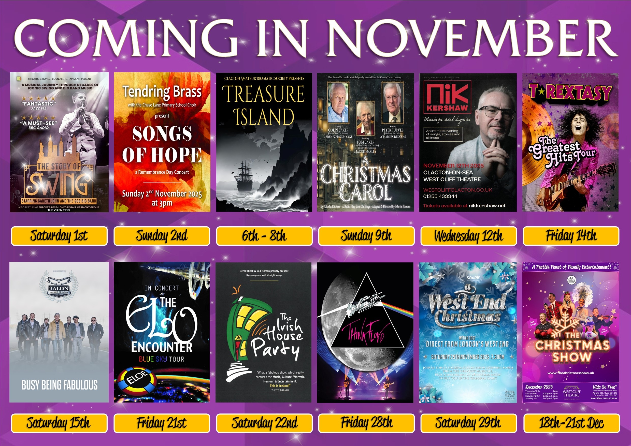 Please leave plenty of time to get to the theatre. There are a number of road closures in place around Clacton due to Gas replacement works.